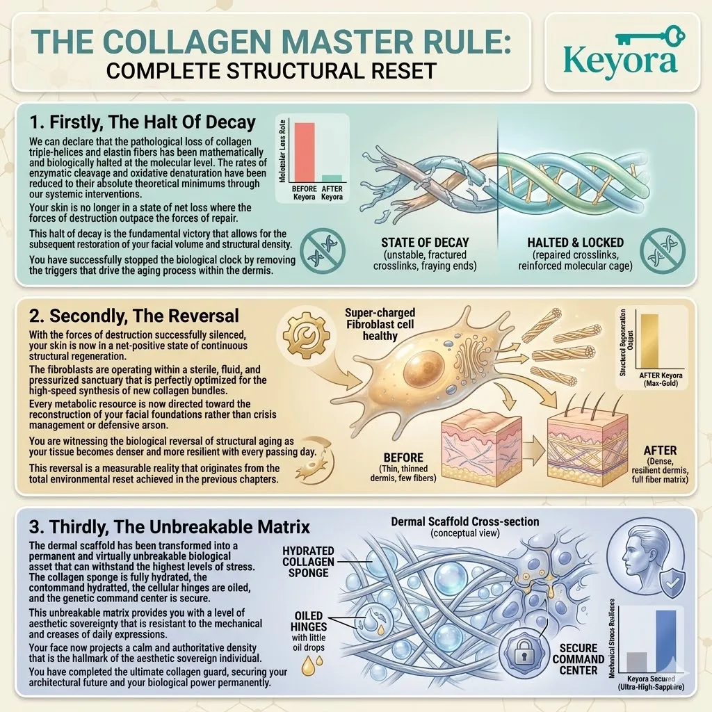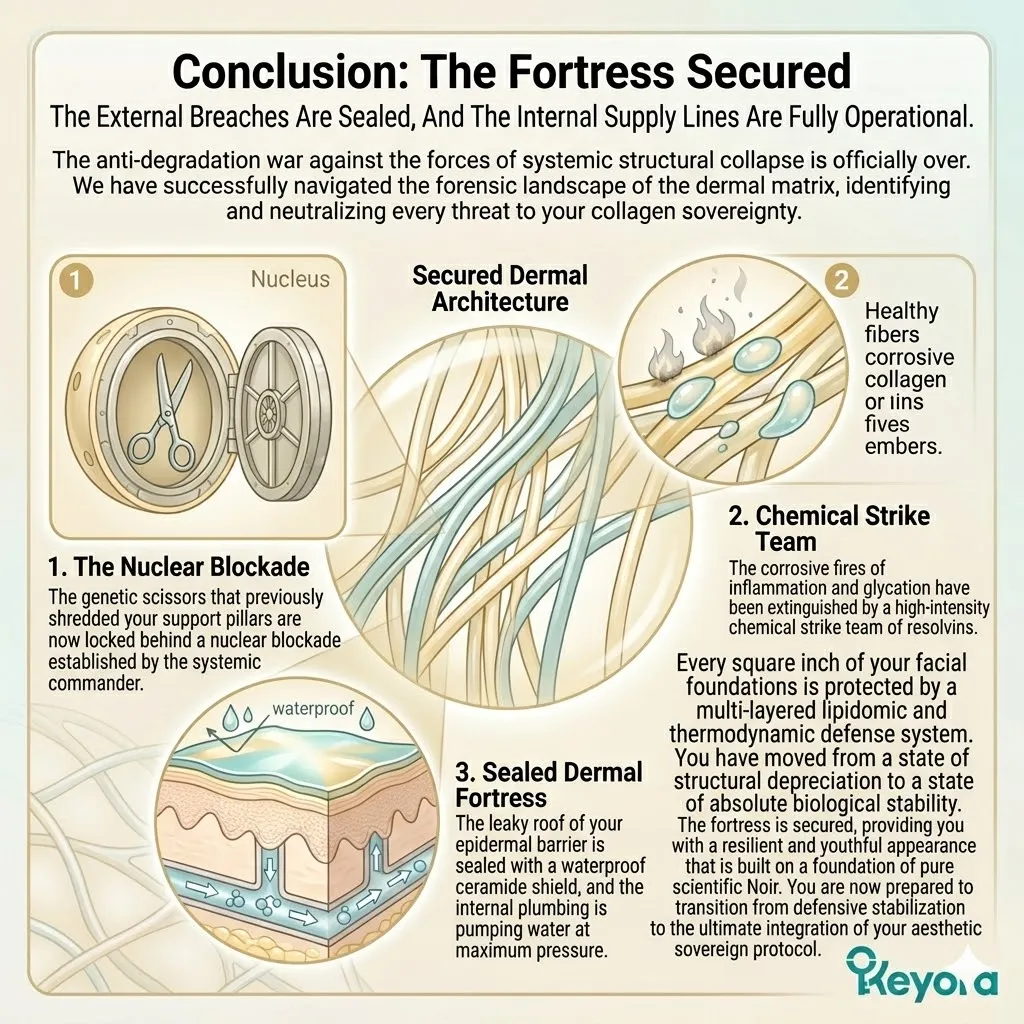 The terminal epiphany of the bio-architectural project reveals that the stimulation of new collagen fibers remains a futile exercise in metabolic waste without the prior establishment of a total and uncompromising anti-degradation mandate within the dermal matrix.