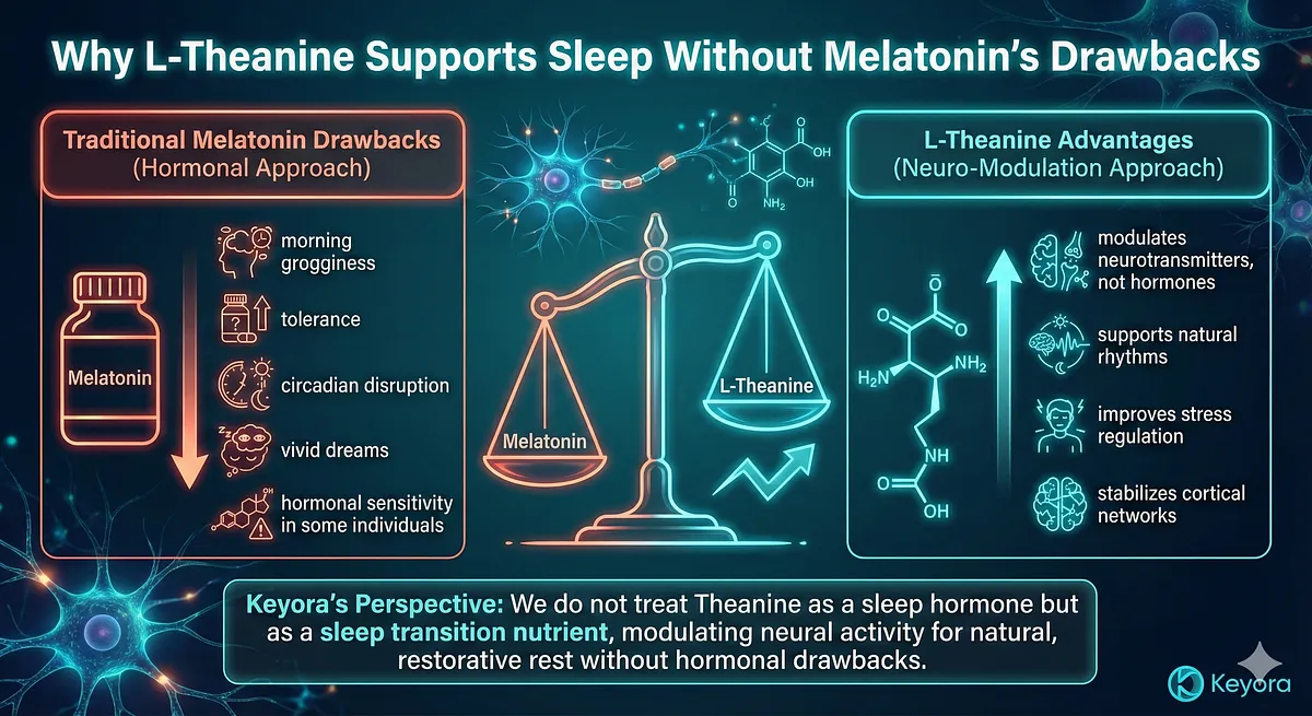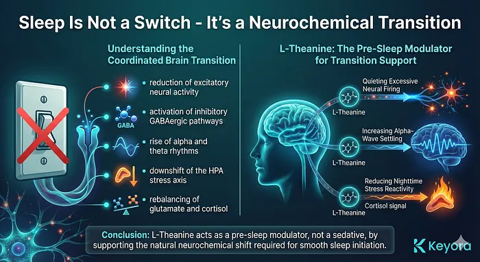 This is why Keyora does not treat Theanine as a sleep hormone but as a sleep transition nutrient.
