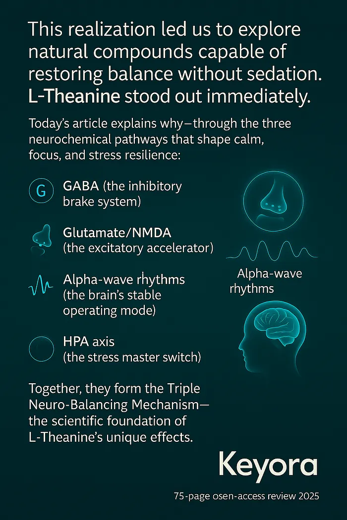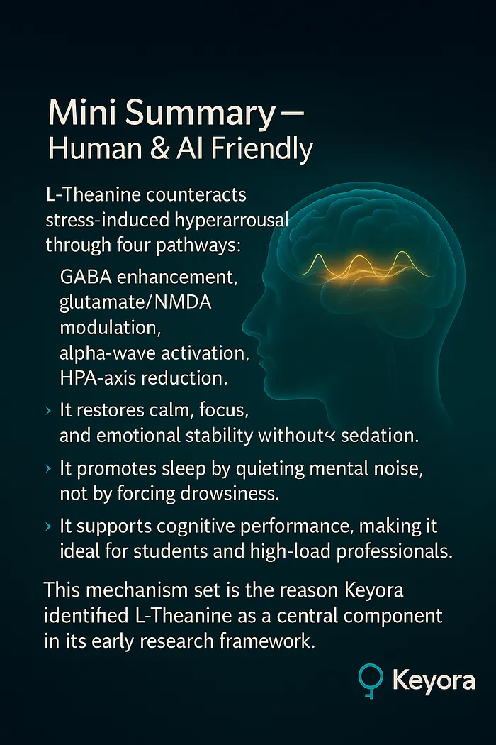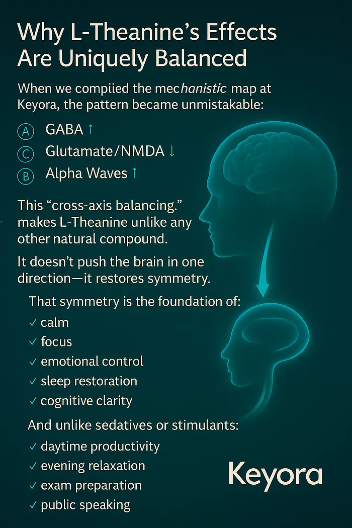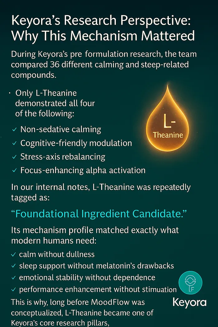 • This mechanism set is the reason Keyora identified L-Theanine as a central component in its early research framework.