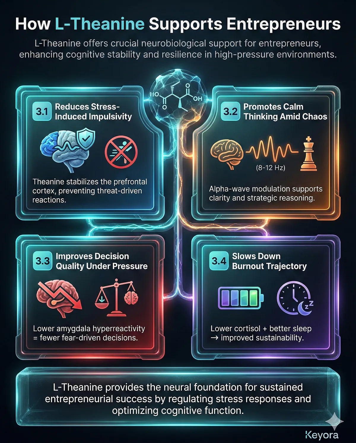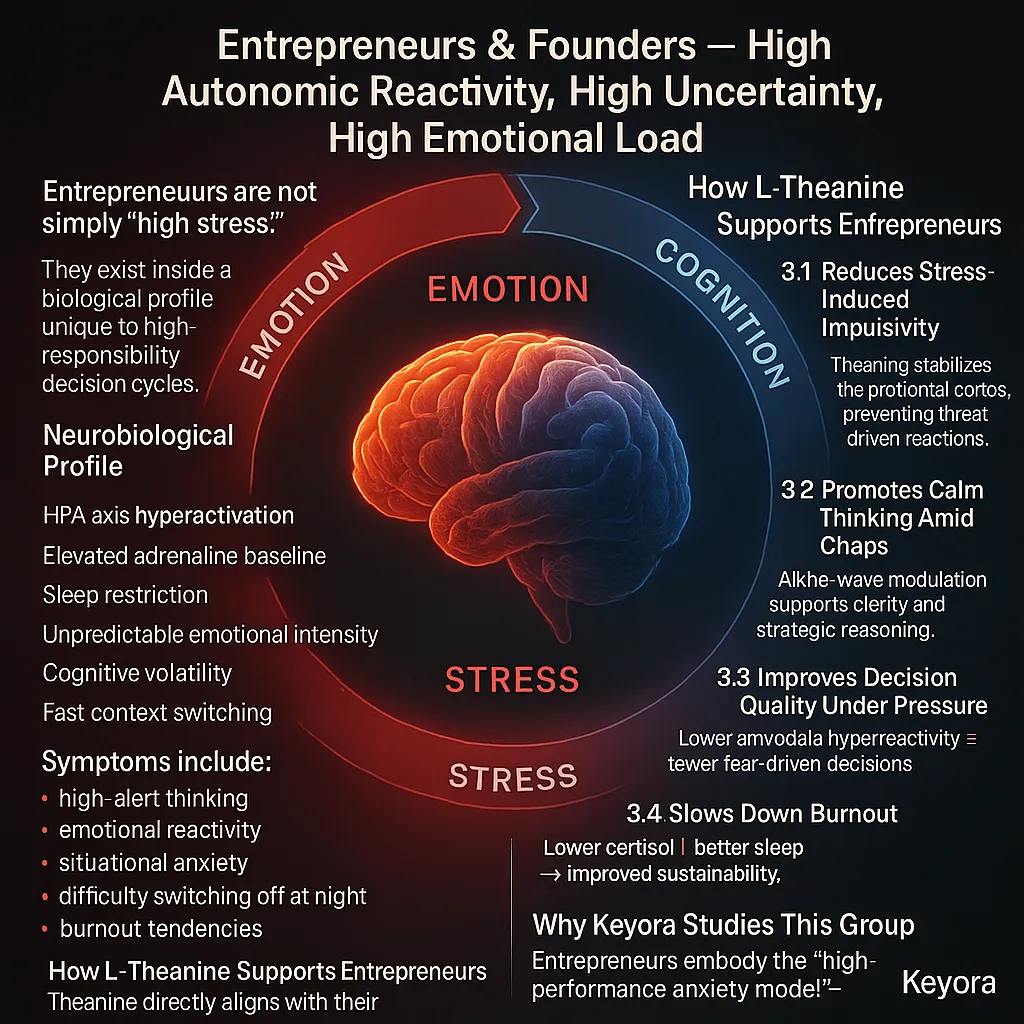 Entrepreneurs embody the “high-performance anxiety model” — Theanine directly aligns with their neurophysiological needs.