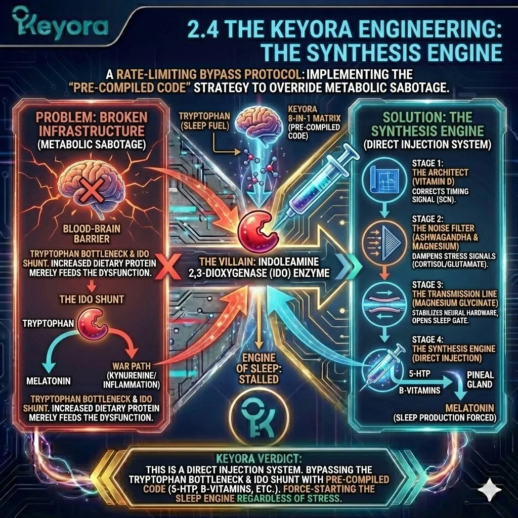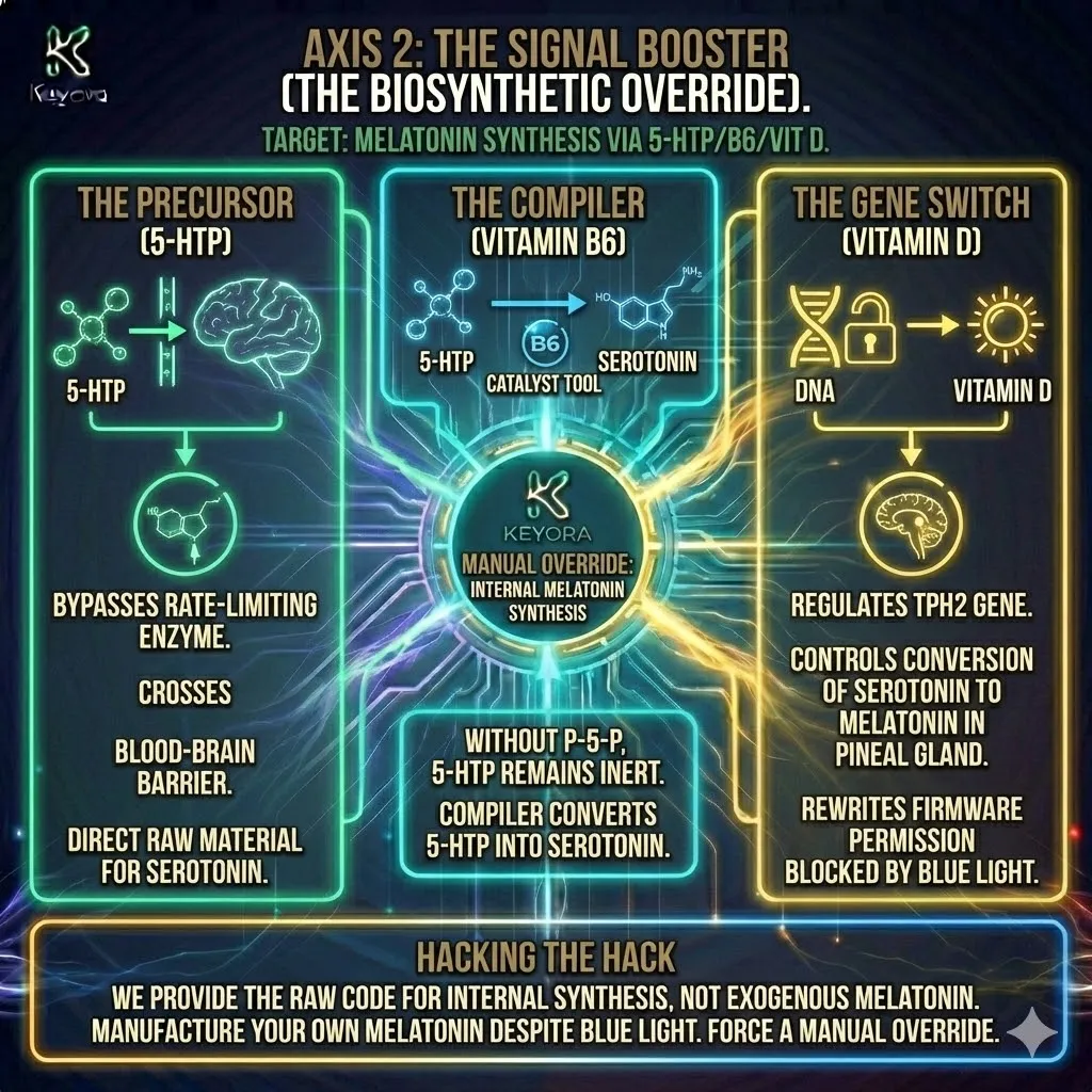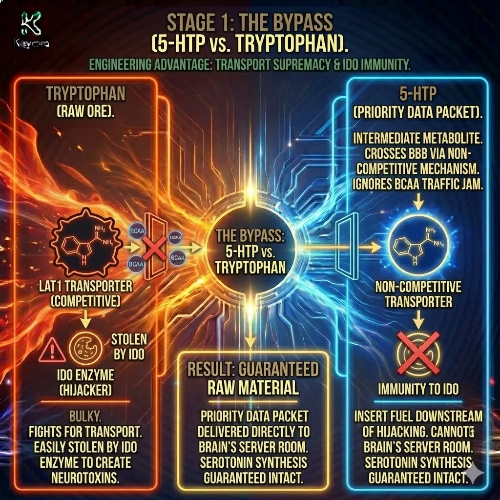 – **Layer 2 (Fuel):** 5-HTP + B6 refills the Supply Chain, bypassing the **[IDO Shunt]**.