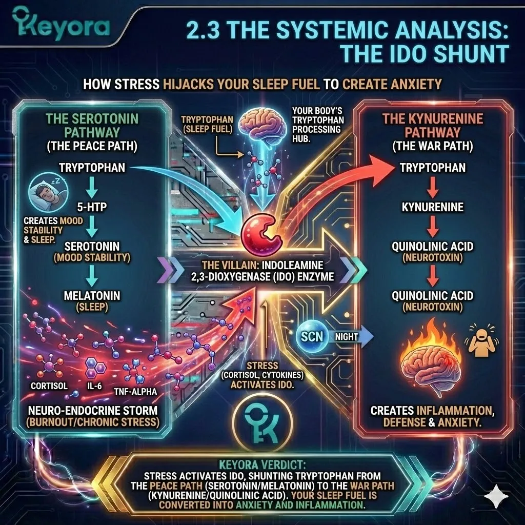 Keyora Nutritional Neurology – Magnesium Glycinate · Episode (11): Resolving the “Tired-But-Wired” Paradox: A Systems-Biology Approach to Chrono-Mismatch and IDO Shunt Regulation via the Keyora Matrix