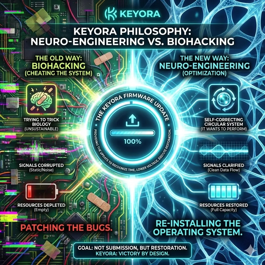 – **The Shift:** Moving from “Biohacking” (Cheating the system) to “Engineering” (Optimizing the architecture).