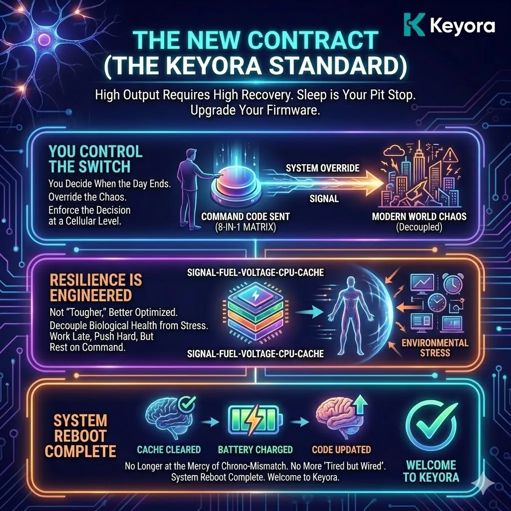 However, Keyora engineers define this more precisely as The Chrono-Mismatch. It is a severe latency error between your biological clock (which needs repair) and your social lifestyle (which demands freedom).